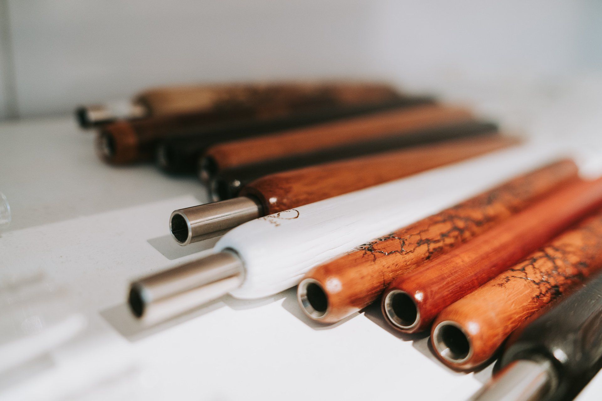 Die Penta ist eine kleine (ca. 39 cm) kompakte Steck-Shisha aus V2A Edelstahl, echtem Carbon, Epoxidharz und Holz. Der Blow Off befindet sich unterhalb vom Shisha-Teller und sorgt für ein schnelles und angenehmes Entlüften. Der Shisha-Rauch prallt am Kohleteller ab und wird nach unten geleitet. Um dir einen schnellen Austausch deines Shisha-Kopfes zu ermöglichen, kann der Shisha-Teller bequem durch den Schliffadapter von der Rauchsäule entfernt werden. Zusätzlich kann z.B. ein Molassefänger (18/8 Schliff) integriert werden. Die Sleeves sind in 3 verschiedenen Farben verfügbar (Rot, Blau & Weiß). Durch die besondere Zusammensetzung von Epoxidharz und Holz ist jede VYRO - Penta ein Unikat.
